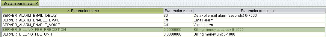 In the same way, if the consumption is 2.2,the 0.2 meet Billing money accuracy request, so need to on the 0.5*4 basis of increase a Billing unit, so The actual amount of consumption is 2.5. The Configuration interface is on the system paramber, as shown: